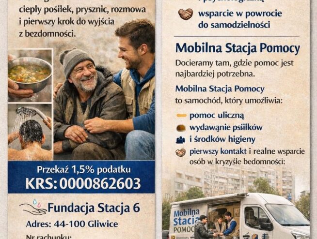 We wrześniu 2020 roku, jako zaangażowana grupa wolontariuszy, postanowiliśmy wspólnie stworzyć Fundację „Stacja 6”. Od samego początku nasza Fundacja kieruje się ideą równości szans dla wszystkich ludzi. Naszym głównym celem jest udzielanie pomocy osobom znajdującym się w kryzysie bezdomności, chorym, starszym, z niepełnosprawnościami, pozbawionym opieki, nieakceptowanym społecznie oraz zagrożonym wykluczeniem społecznym.